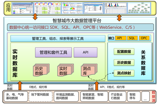實(shí)時數(shù)據(jù)庫作為物聯(lián)網(wǎng)產(chǎn)業(yè)的基礎(chǔ)軟件,能有效支撐智慧城市大數(shù)據(jù)平臺的高效運(yùn)轉(zhuǎn),使平臺具有無限擴(kuò)展上層智慧應(yīng)用的能力,以及無限擴(kuò)展下層數(shù)據(jù)接入的能力,起到了承上啟下的關(guān)鍵作用,是必不可少的關(guān)鍵部件。